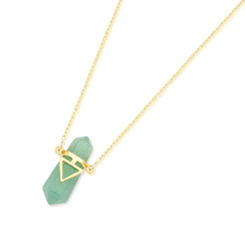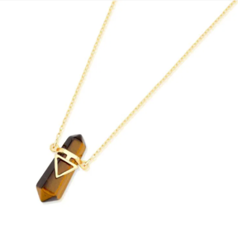 Colar delicado e cheio de significado, composto por uma ponta de cristal bi-terminado, finalizado com detalhe em forma de triângulo, símbolo de equilíbrio, força e conexão entre corpos, mente e espírito.